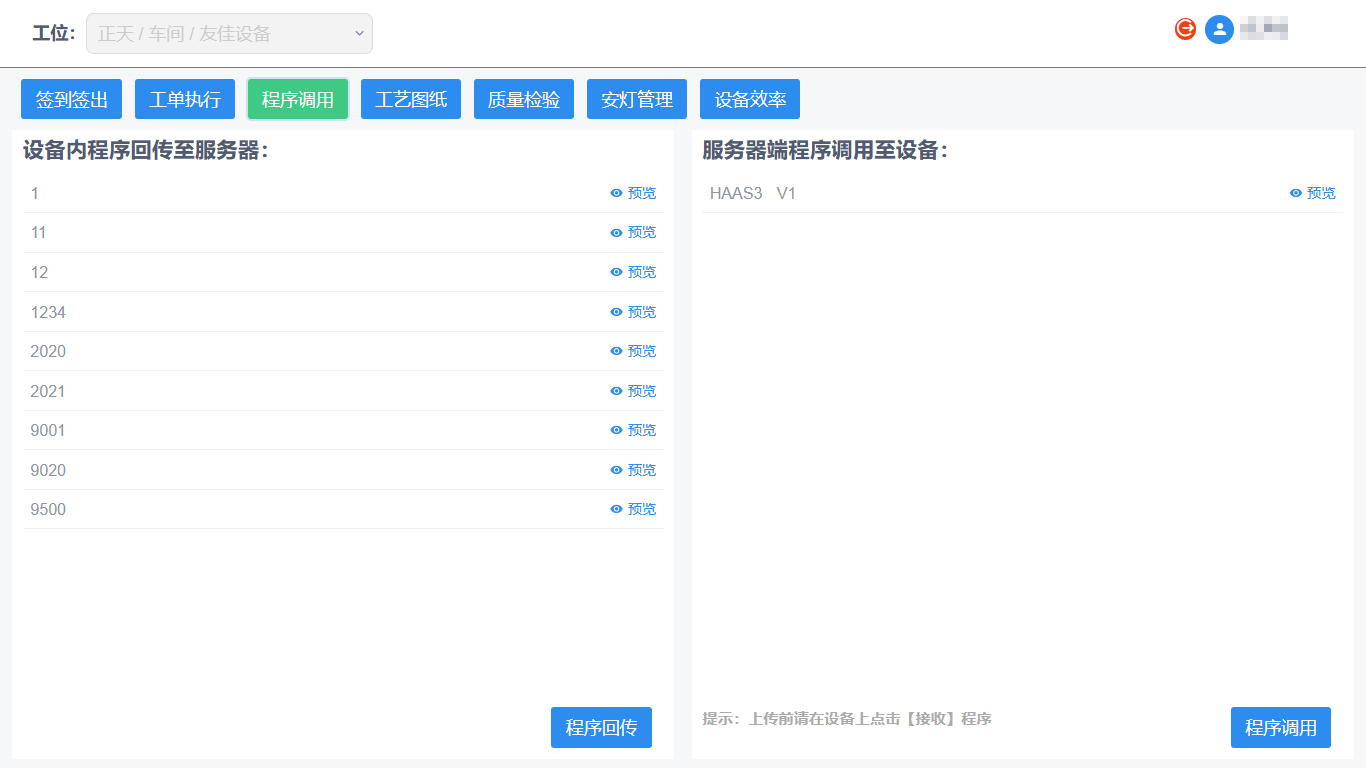 2.1远程下发加工可直接登录后台服务器,选择待加工的程序文件及要加工的设备远程将程序文件传输至机床中,机床调用程序代码完成自动化加工控制;