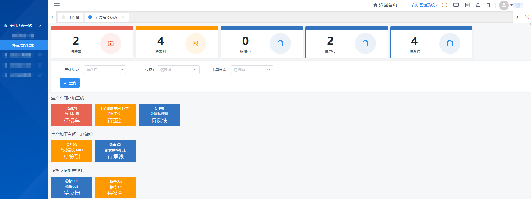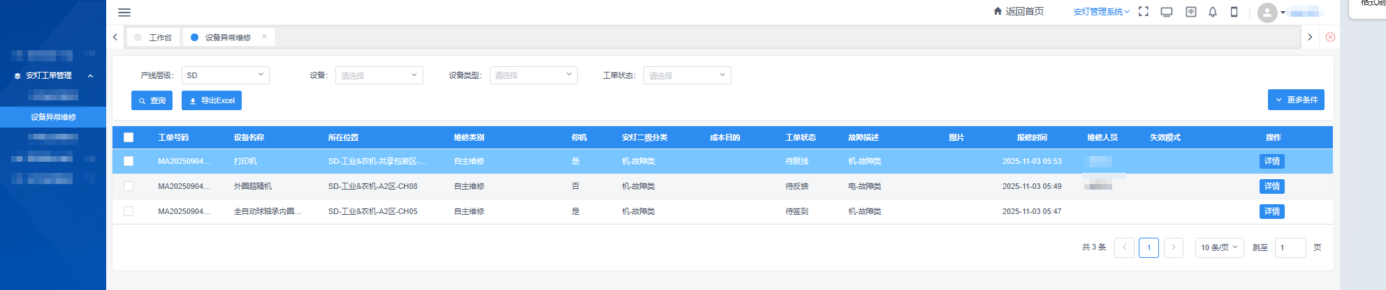 全局可视,一屏掌控,本次迭代新增异常维修状态功能,将分散的设备异常与维修进展转化为一目了然的全局视图。不仅能帮助产线主管瞬间掌握异常设备的维修进展,更是将被动响应升级为主动管理,提高维修流程流转效率,进而压缩异常停机时间,为实现“零意外停机”的精益制造愿景奠定坚实基础。