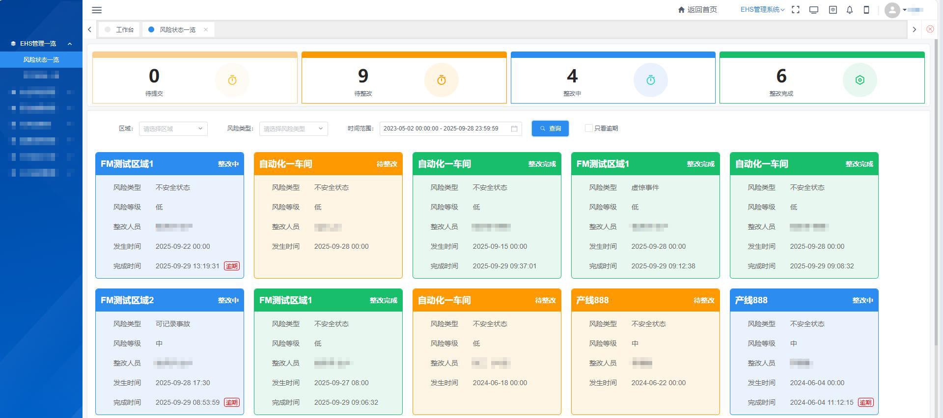 安全源于洞察,防患始于未然。本次迭代新增“风险状态一览”功能,将所有上报风险事项的整改进展以可视化看板形式集中呈现,支持按状态实时筛选与跟踪。管理者可一键掌握风险分布、整改进度与逾期环节,实现从风险上报到闭环处理的全流程透明化管理,让每项隐患“看得见、管得住、跟得牢”。
