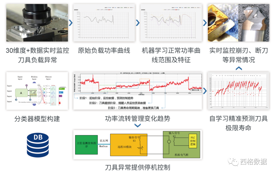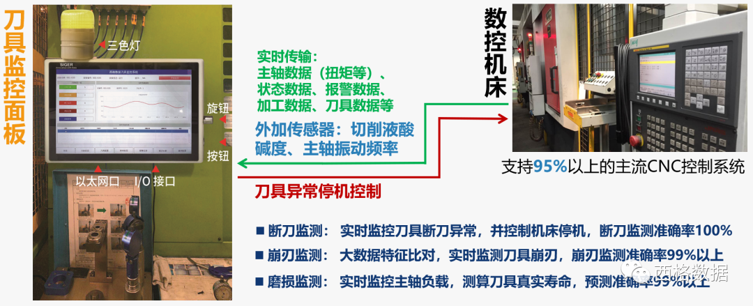 西格刀具智能管理系统可对刀具断刀、磨损、崩刃等现象实时监控与分析,刀具崩刃、断刀识别率99%以上,刀具寿命预测准确率达到99% 以上。