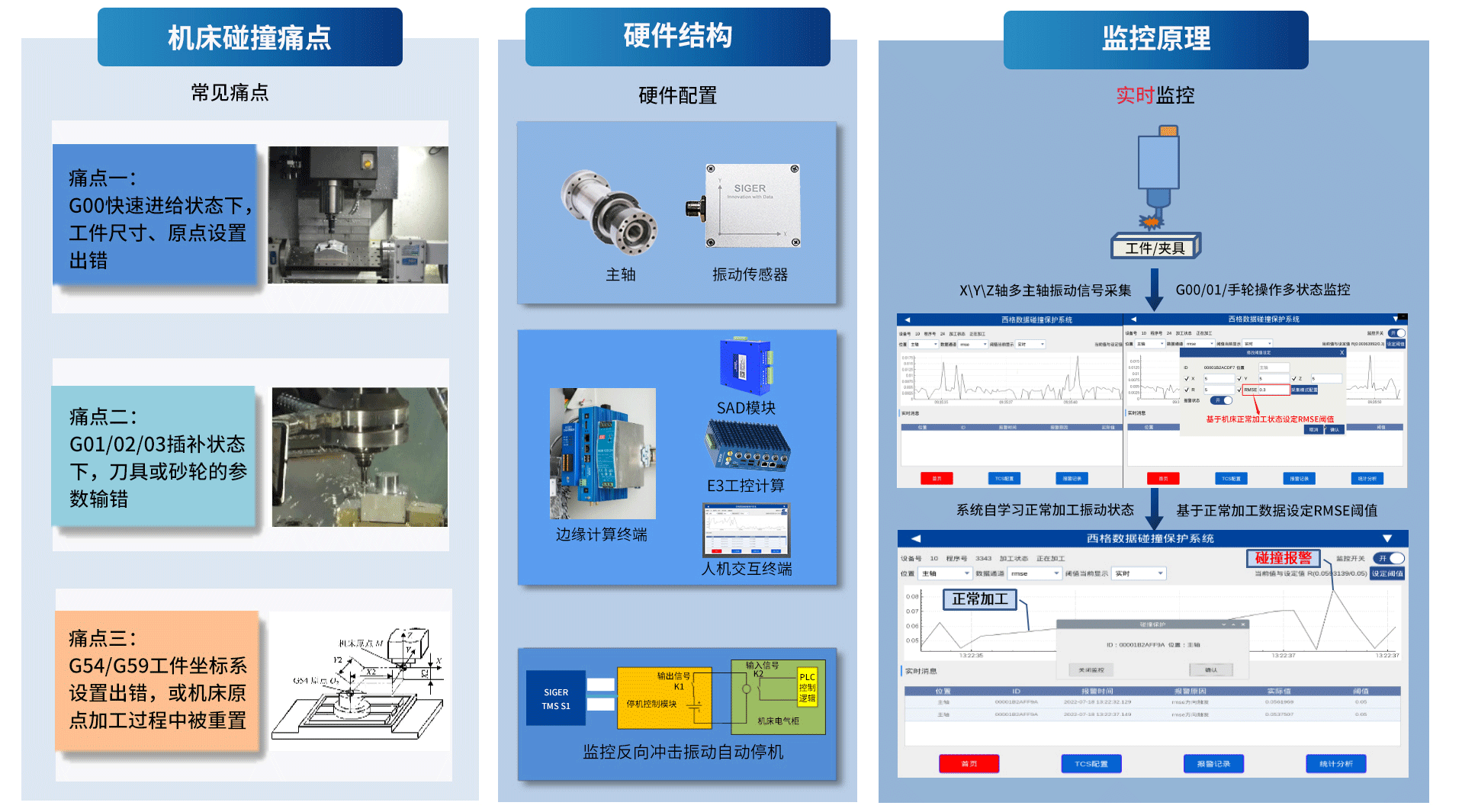 异常停机控制:机床过载|刀具断刀、崩刃、磨损异常|振动异常|机床碰撞等多种异常实现自动停机控制