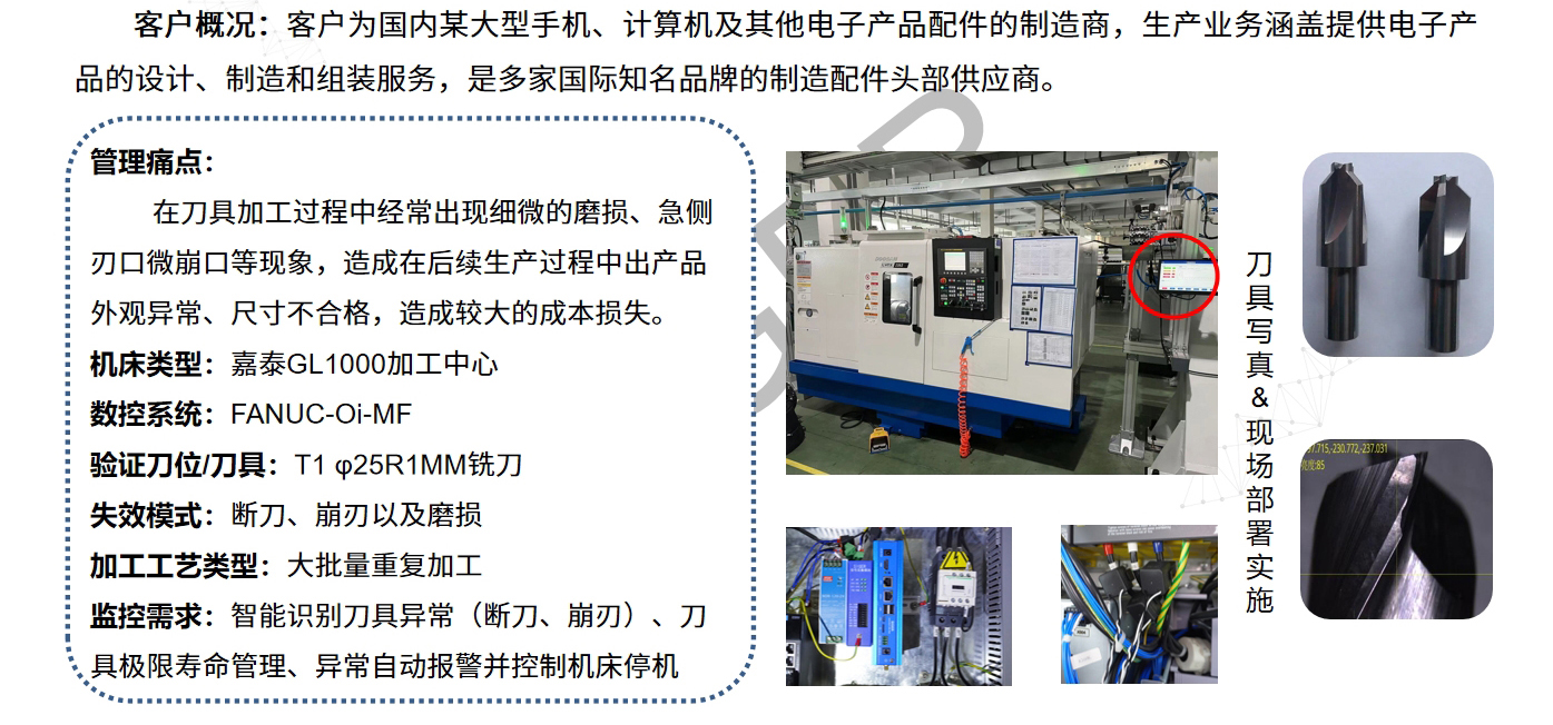 某苹果供应链头部供应商刀具监控系统:计算机等电子产品制造|断刀、崩刃异常识别|刀具寿命极限预测