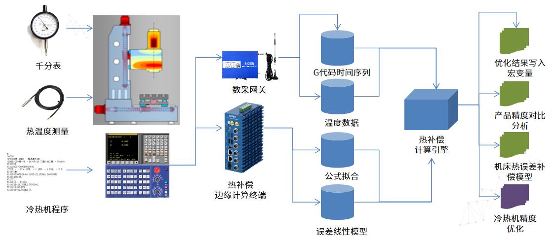 西格数据热误差补偿系统(Thermal Compensation Management System,Thermal CMS),通过测量和补偿系统减少数控机床在加工过程中由于温度变化引起的热误差,从而提高加工精度和稳定性;基于机床嵌入式结构,结合热误差补偿模型,实时输出补偿值,有效提高产品加工精度,降低产品报废率。