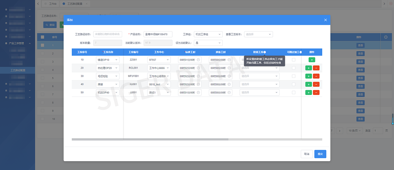 为提升工艺路径设置的直观性与便捷性,针对该功能进行了升级,新增了工艺路径创建与工作中心关联选项。同时,简化了字段命名,加入了明确的提示信息,有效降低了用户的学习难度,大幅提升了路径设置的效率。