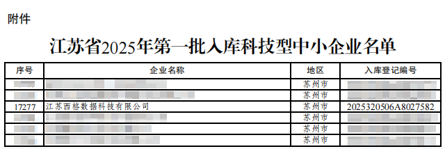 • 喜报丨西格数据入选江苏省2025年第一批高新技术企业