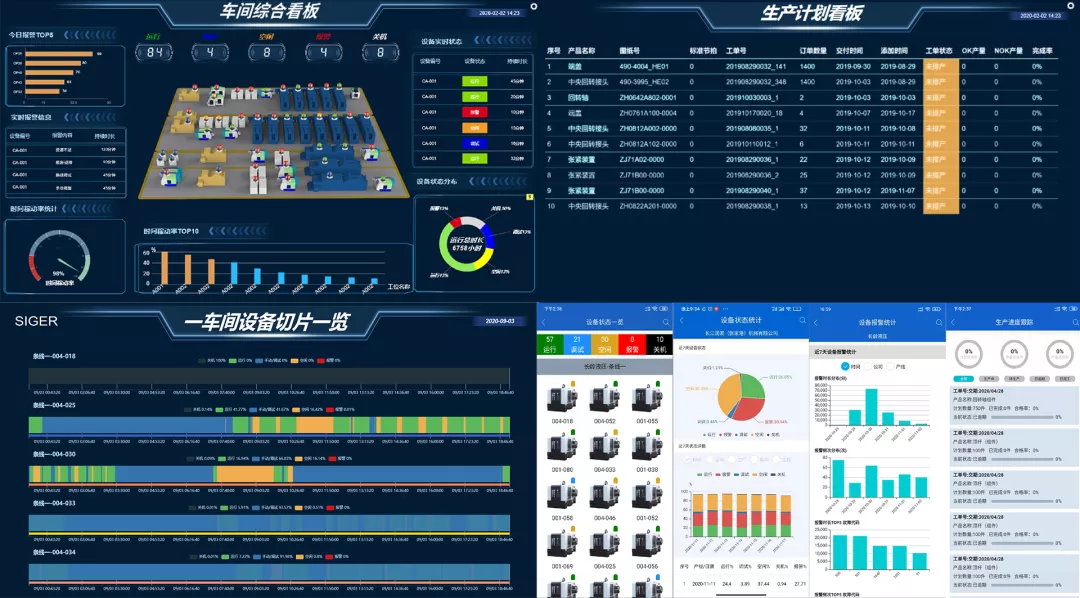 Dashboard SIGER SaaS MES提供生产管理看板、设备状态监控、生产产量监控、工艺参数监控、设备故障监控等模块,帮助用户优化生产管理模式,减少生产统计负荷95%,提高生产管理效率30%。