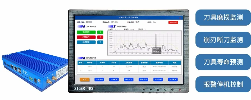SIGER TMS (Tool Monitoring System)刀具监测系统是西格数据针对工业制造型企业在刀具使用过程中的难点为客户量身打造的一款刀具状态监测软件,能够通过采集主轴电流负载数据进行分析的方式,真正意义上做到预测刀具寿命,让生产过程中对停机换刀的处理更加游刃有余,避免因断刀崩刃而造成的设备损坏与产品质量损失!