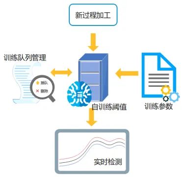 TMS E3 断刀版V2.3.0版本针对客户生产频繁换型的使用场景,新增默认配置界面,支持加工过程按照所设定默认配置自动生成包络线训练与报警监控,从而避免频繁换型引起的频繁配置操作。同时对于自动配置或者手动设定提交的包络线训练任务,提供训练队列管理功能。支持对已提交的训练任务进行插队训练和删除训练的功能。