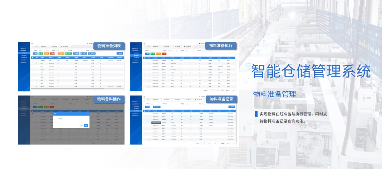 ■ 物料准备管理:实现物料在线准备与执行管理,同时支持物料准备记录查询功能;